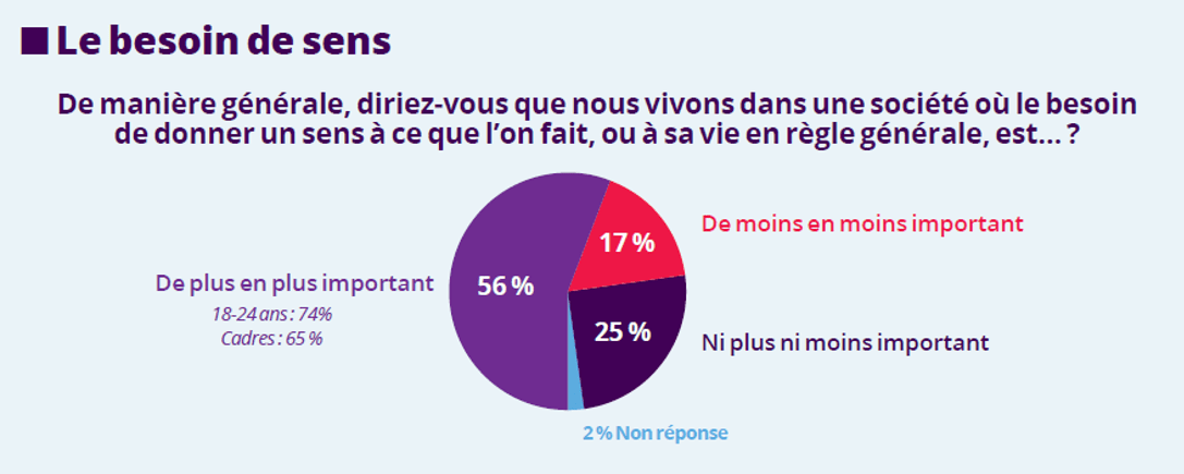 L’Observatoire du sens® nous a ainsi appris en 2018 que si les notions de mission, de valeurs et de responsabilité sont déterminantes, la connexion avec les attentes et les évolutions de la société sont essentielles.