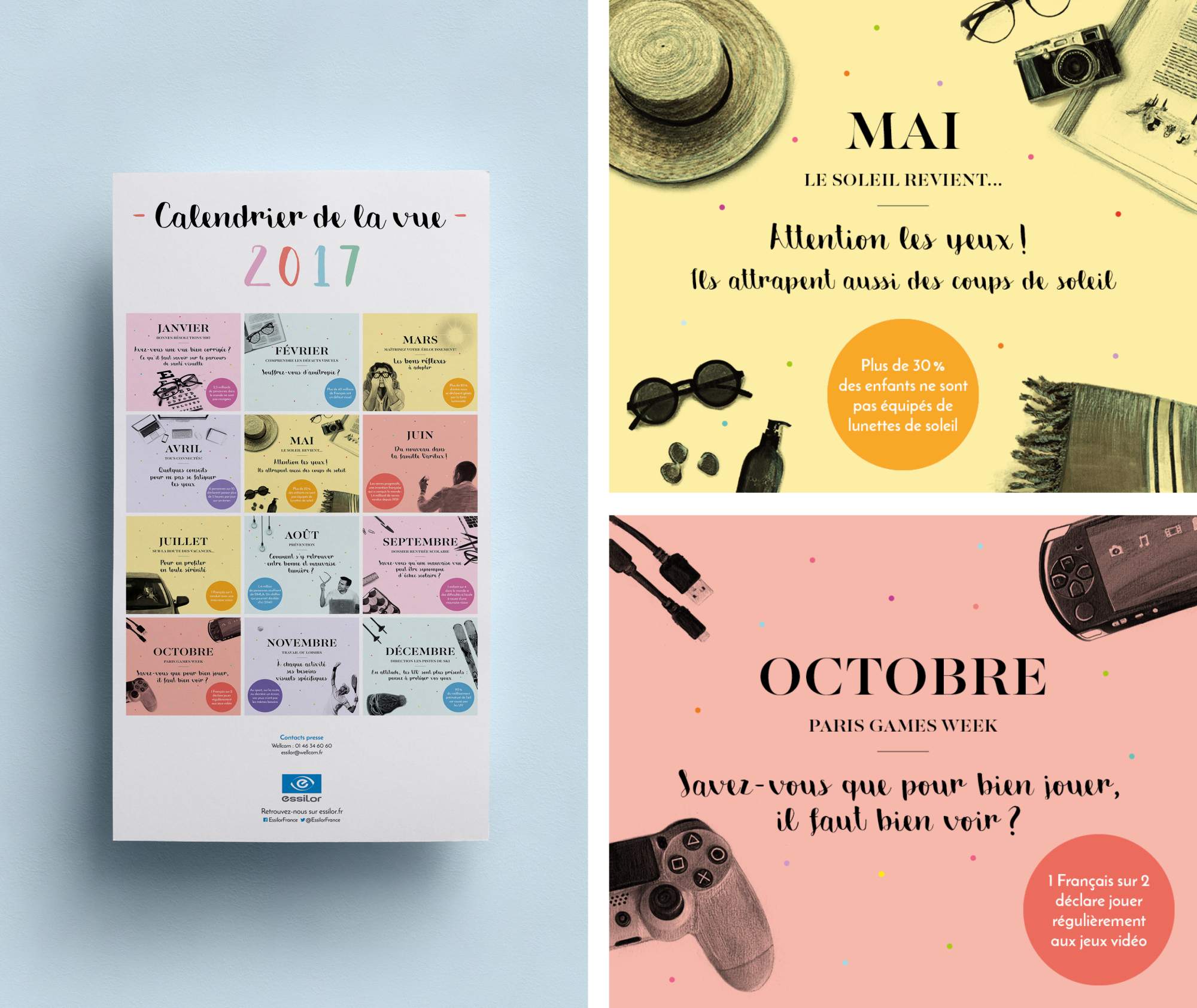 - Un calendrier de la vue avec alertes presse thématiques, Journée Portes Ouvertes, Magic Vision Box…, en version print et digitale qui apporte chaque mois un éclairage, une expertise ou du contenu ciblé sur des sujets en lien avec la vue. Un contenu pédagogique thématisé selon les saisons pour sensibiliser les Français aux enjeux de leur santé visuelle.