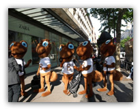 A l’ occasion de l’ouverture des soldes, le 24 juin, 5 Billy la fourmi géantes sont venues en aide aux passants. Elles se sont donné rendez-vous devant le Printemps et les Galeries Lafayette du Boulevard Haussmann de 7H30 à 21H, pour distribuer des cabas « shopping » aux aficionados présents dès l’aurore, et aussi pour les aider à porter leurs paquets… Tout un programme en cette première journée de soldes tant attendue !