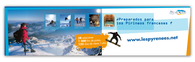 Dans le cadre de l’organisation d’un roadshow en Espagne, la Confédération Pyrénéenne du Tourisme (CPT), qui regroupe et fédère les principaux acteurs de l’économie touristique autour du massif des Pyrénées, a souhaité attirer l’attention des touristes espagnols potentiels sur tous les avantages qu’offre la région en matière de tourisme hivernal. 38 stations, 1 000km de pistes, 132 jours skiables/an… autant d’atouts uniques développés au cœur d’une campagne d’affichage de grande envergure par Wellcom.