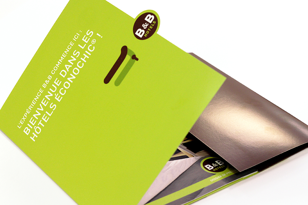 Créé par l’agence Wellcom, le nouveau dossier de presse de B&B Hôtels a été conçu pour présenter la chaîne hôtelière, son implantation et son développement à travers l’Europe mais aussi pour répondre à toutes les questions pratiques des journalistes sur le concept hôtelier et les services innovants proposés.