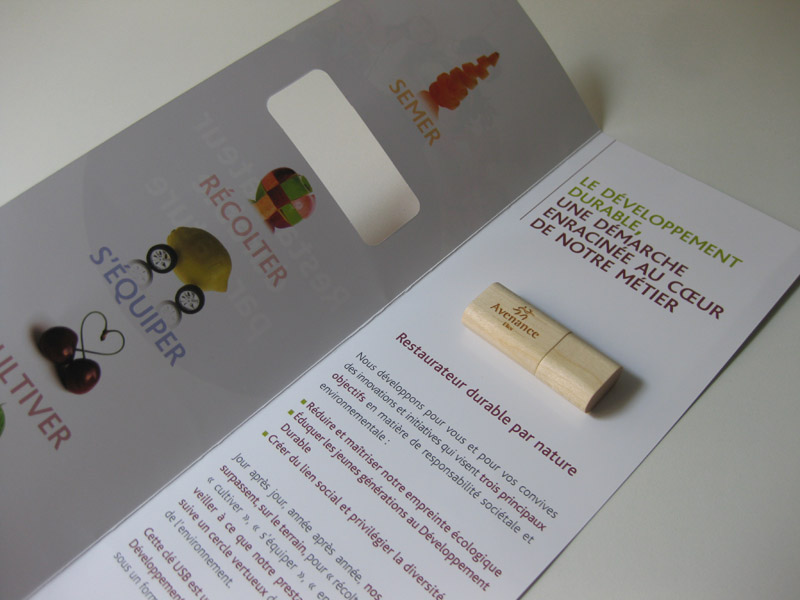 Une plaquette institutionnelle, diffusée exclusivement sur clé USB, présente en détail les engagements pris par Avenance Enseignement en termes de Développement Durable.