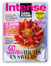 Le magazine de cuisine Intense sort en kiosque début juillet ! Gourmand, il est pensé pour les lectrices exigeantes et curieuses. Il fait partie de la grande famille Cuisine Actuelle et propose pour la première fois un dossier de 30 pages avec une thématique traitée sous toutes ses formes (L’apéritif dînatoire pour le n°1), sans oublier la leçon de dressage, les accords mets et vins ou l’évasion avec un reportage sur la cuisine à Bangkok.