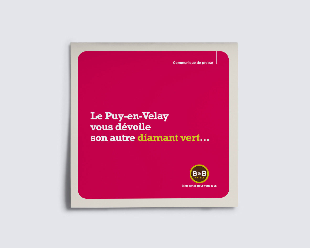 Le concept ? « Le Puy-en-Velay vous dévoile son autre diamant vert ». Un clin d’œil à la principale richesse du Puy-en-Velay : la lentille verte. Pour compléter ce communiqué de presse, une boîte de lentilles vertes du Puy brandée B&B Hôtels a été diffusée à 50 journalistes.
