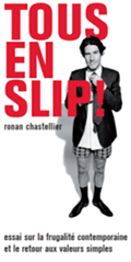 Par temps de crise, de déficit et de contribution fiscale exceptionnelle, les habitudes des Français changent. Nécessité matérielle ou conviction idéologique, beaucoup se déclarent en faveur d’un mode de vie plus simple et frugal. Certains pratiquent la course à pieds nus (barefoot), d’autres s’entichent de bio, de light, de 0 % ou se prennent soudain de passion pour le végétal, leurs jardins et leurs potagers. Frugalité, simplicité, authenticité ! Selon « Tous en Slip », de Ronan Chastellier, la mode, la politique, l’économie et la culture connaissent désormais une « époque en slip », qui est une époque de nudité, de « nondissimulation » des choses. Mais aussi de régression intellectuelle et de retour à un état de nature, naïvement qualifié de « postmoderne ». Pour Renan Chastelier, l’austérité économique pourrait aussi préluder à une forme d’éveil spirituel, un itinéraire vers la vérité. Mais voilà,les attitudes les plus pures et vertueuses ne sont pas à l’abri du Marketing et des marchands du temple. Entre théorie sociologique et satire sociale, connaissance et divertissement, ce livre est une lecture originale et drolatique des tendances de la crise. C’est aussi un avertissement ironique et décomplexé aux chantres de l’austérité et aux candides adeptes du retour aux valeurs simples. Avec Tous en slip !, un gros rire riche de vérité philosophique est en marche. A découvrir sans plus attendre !