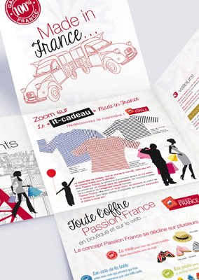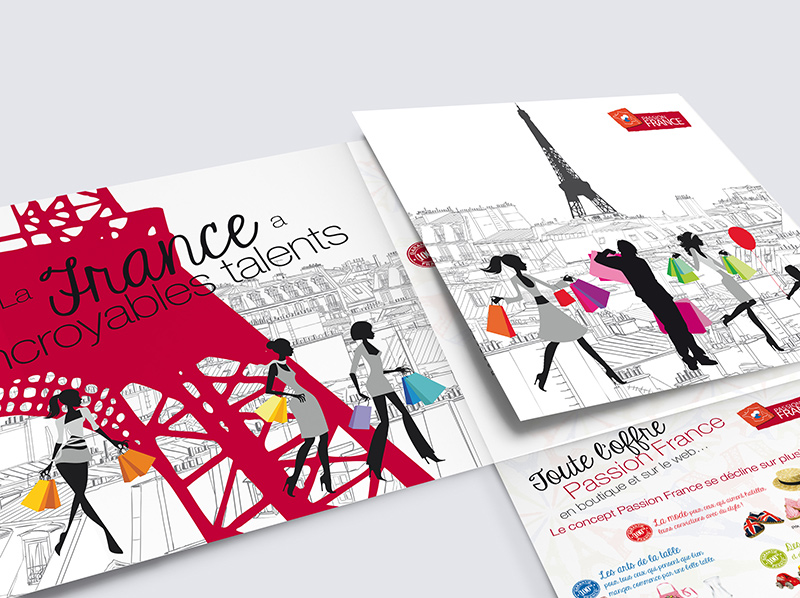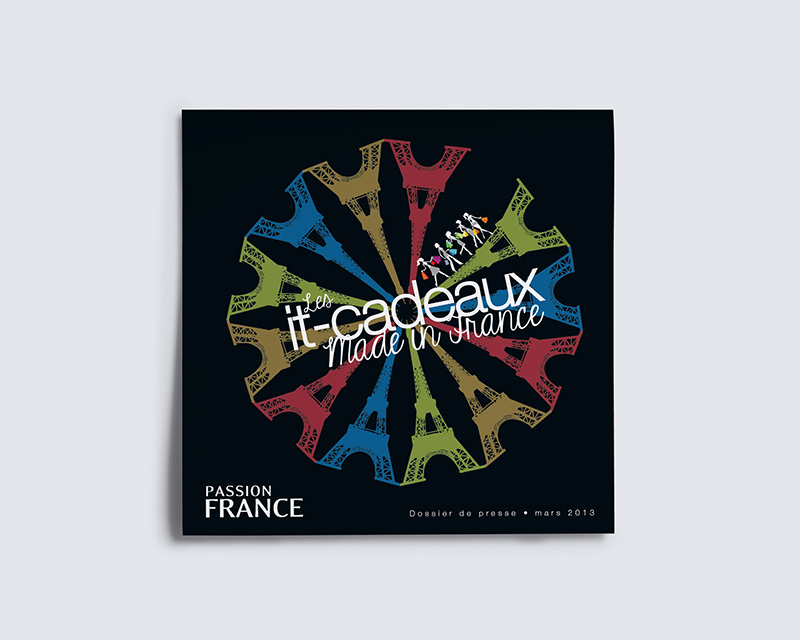 Passion France, est l’une des premières marques à s’être engagée dans le Made in France. Depuis 2010, Rodolphe Grosset et Yves Guilloux, camarades d’écoles, globe-trotteurs et véritables entrepreneurs proposent des cadeaux et souvenirs 100% origine France. Avec Passion France la recherche d’un cadeau devient un vrai plaisir, qui passe par un voyage dans les classiques, les incontournables de la culture et de l’imaginaire collectif français. Pour l’accompagner dans sa stratégie de Relations Publics, Passion France a fait appel à Wellcom. Et pour illustrer le côté tendance, Wellcom a imaginé un dossier de presse créatif. Basé sur le concept Made in France, Made in Tendance, le dossier de presse présente toute l’offre Passion France à travers les symboles de la France : Tour Eiffel, 2 CV Un dossier de presse qui se veut à la fois institutionnel, consumer… et tendance !