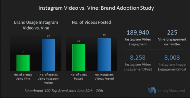Avec cette nouvelle fonctionnalité, Instagram s’impose comme une véritable solution concurrente de Vine lancé par Twitter. En effet, la solution proposée par Instagram est bien plus riche. A l’inverse de Vine, qui autorise des vidéos de 6 secondes, Instagram lui permet de faire des vidéos de 15, la durée parfaite selon son PDG : « c’est suffisamment long pour réaliser des vidéos créatives, et suffisamment court pour ne pas poser de problèmes de chargement ». Une durée qui n’est pas sans rappeler celle, plus classique, d’un traditionnel spot de publicité. De plus, l’application permet à l’utilisateur de modifier sa vidéo au fil de ses prises, de revenir en arrière, de supprimer les parties qui ne lui plaisent pas ou encore de rajouter l’un des 13 filtres spécialement créés. Enfin, l’utilisateur peut sélectionner la photo qu’il souhaite en guise de couverture de vidéo. Une véritable offre à valeur ajoutée pour les marques qui ont adoptées très vite cette nouveauté. Une réalité confirmée par les chiffres du rapport mené sur la question par SimplyMeasured.