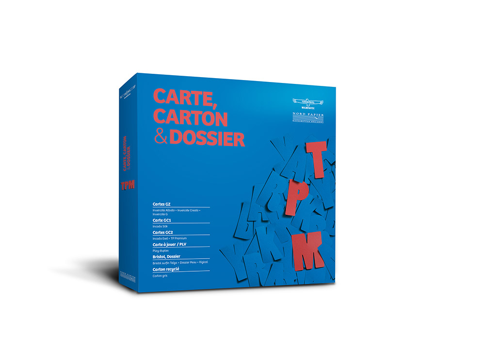 Le concept des lettres découpées a été décliné, en respectant un code couleur permettant d’identifier clairement les gammes de papiers présentées.