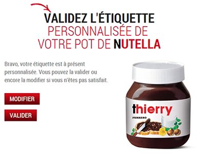 Une déclaration qui se vérifiait quelques semaines après l’initiative de Coca-Cola. Nutella, la célèbre marque de pâte à tartiner, lançait, elle aussi, sur Facebook une campagne de personnalisation.