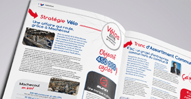 Au menu : les actualités du réseau, les infos RH, des portraits de collaborateurs et des interviews de sociétaires. La ligne éditoriale est volontairement tournée vers les sociétaires et employés avec 2 grandes rubriques dédiées : « Nos victoires » sur le thème du partage des bonnes pratiques et « Parcours sportif » qui permet de faire découvrir les initiatives et loisirs extra-professionnelles des employés.