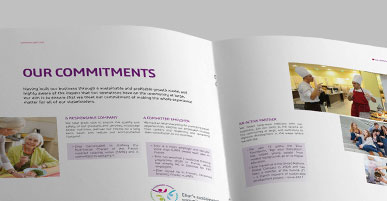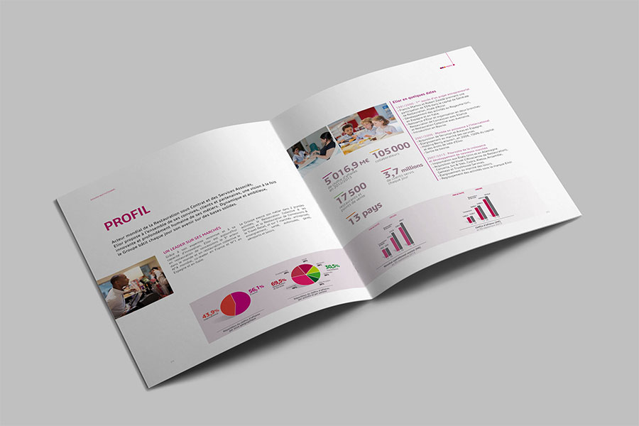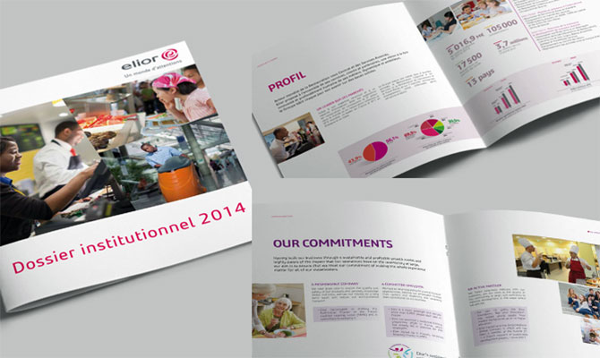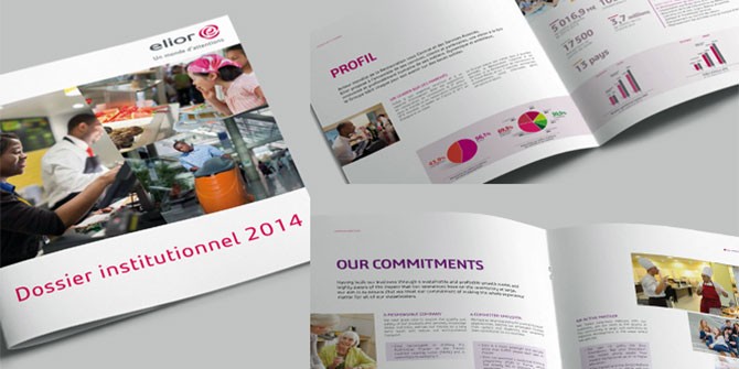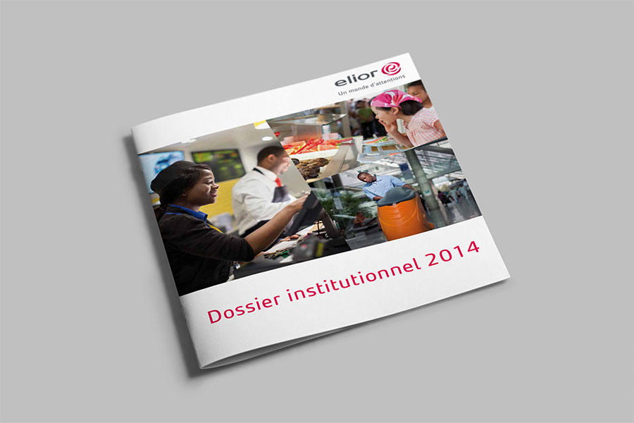 Créé en 1991, Elior est un des leaders mondiaux de la Restauration et des Services. Présent dans 13 pays, Elior a pour mission d’accueillir et de prendre soin de chacun de ses clients avec passion et compétence dans le monde de l’entreprise, de l’enseignement, de la santé ainsi que dans l’univers des voyages et des loisirs. Issu de la fusion de plusieurs sociétés de Restauration et Services, Elior développe aujourd’hui ses activités avec pour promesse Un monde d’attentions, sa signature de marque. Elior a missionné Wellcom pour la réalisation de son Dossier institutionnel – rédaction et conception graphique. Destiné aux institutionnels, clients et prospects d’Elior, cette brochure de 12 pages, disponible en français et en anglais, présente l’activité d’Elior, ses engagements en faveur des collaborateurs, des clients et de son environnement ainsi que le détail de ses 3 activités : Restauration, Services, Concessions & Travel Retail.