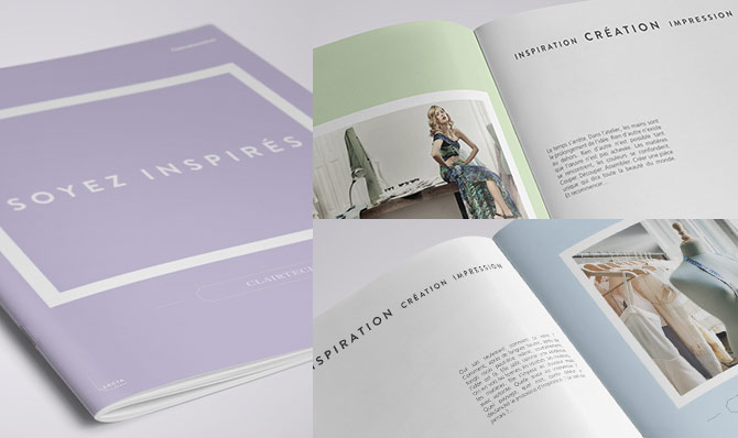 Le parti pris ? Créer une histoire autour du papier Clairtech, à la manière des cahiers de tendance. Des textes poétiques illustrent le processus auquel sont confrontés tous les créatifs : inspiration, création et impression. Les 3 textes sont illustrés par des visuels issus du monde de la haute couture, afin d’associer Clairtech aux codes du luxe à la française.