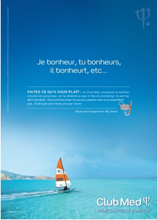 - ClubMed qui conjugue le bonheur, autorisant alors de la part des auteurs de l’étude, un trait d’esprit : « Le Club Med désormais c’est le français made in China »