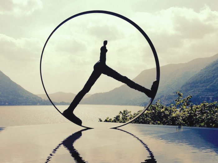 Les symboles, développés dans ma sculpture, sont des codes d’accès à la sérénité et des hommages au temps. Le cercle, figure récurrente dans mon œuvre, représente le temps dans lequel chacun évolue et avance. C’est ainsi qu’est né mon symbole le temps qui passe représentant un personnage qui avance à grands pas, à l’intérieur du cercle. Le temps passe, l’homme avance vers la sagesse… Pour moi, le temps n’est pas un instrument de torture mais un instrument de mesure de la vie qui s’écoule. J’ai d’ailleurs réalisé des œuvres appelées mécaniques du temps en utilisant des rouages, en référence à sa mesure.