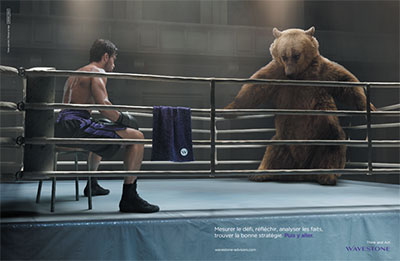 Au-delà de la signature, « Think and Act » représente également la colonne vertébrale de toute la campagne, imaginée et réalisée par Grenade & Sparks. Celle-ci s’articule autour de trois visuels forts et d’un spot de 30 secondes qui met en scène un boxeur face à un ours… Un film brut et intimiste, conçu par Camille Marotte et Mint Production.