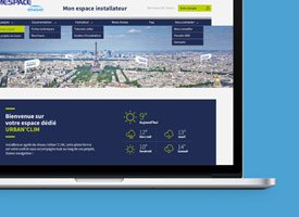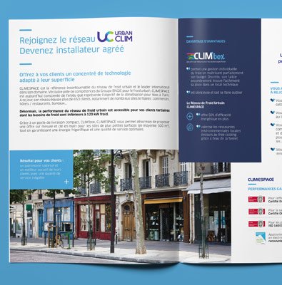 Le territoire graphique se veut à la fois urbain et haut-de-gamme, à l’image de la solution CLIM’box et est décliné sur des brochures et un Extranet dédié aux installateurs agrées.