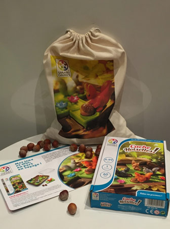 A cette occasion, SmartGames a envoyé son nouveau jeu Cache Noisettes à une sélection de journaliste dans un baluchon personnalisé rempli de… noisettes !