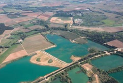 Dans le Sud de la France en effet, les épisodes climatiques peuvent occasionner des montées très rapides des eaux qui présentent un risque pour les populations. Pour contrôler le gonflement du Rieu, affluent du Rhône, quatre plans d’eau exploités en carrière ont été aménagés en bassins de rétention d’eaux pluviales. La capacité possible de stockage devrait approcher 2,5 millions de m3 une fois achevés les derniers travaux, ce qui correspond au volume d’eau généré par une crue centennale.