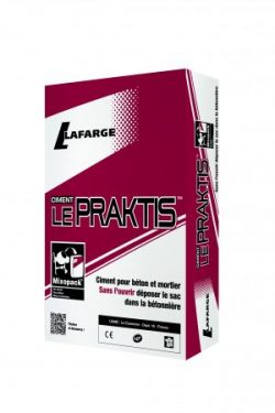 Le nouveau sac Praktis™ s’inscrit dans la stratégie d’innovation packaging de Lafarge France: répondre aux différents besoins des professionnels du BTP et des particuliers. Grâce à la technologie Mixopack™, le sac de ciment peut être directement introduit dans la bétonnière sans l’ouvrir. Ce système garantit des chantiers plus propres, et une mise en œuvre facilitée.