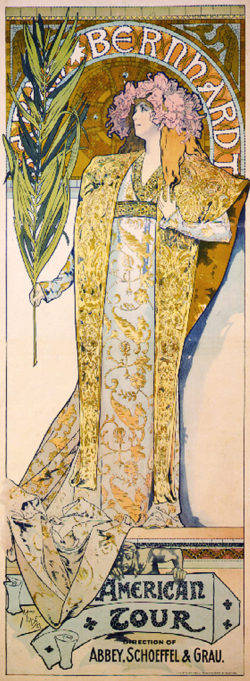 Alphonse Mucha, fer de lance du style Art Nouveau (dont les œuvres font l’objet d’une exposition au Musée du Luxembourg jusqu’au 27 janvier 2019), croquera quant à lui la vedette de l’époque, Sarah Bernhardt.