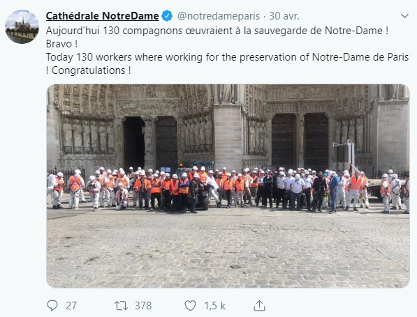 Ce qui nous importe avant tout est le sort des salariés qui ont tous été profondément choqués et attristés par ce tragique incendie. Nous allons nous mobiliser pour qu’ils soient accompagnés et aidés durant cette épreuve. Côté communication, j’ai entrepris de poster une photo toutes les semaines sur nos réseaux sociaux : l’installation de l’échafaudage, les 130 compagnons mobilisés pour la reconstruction… On sait que l’intérêt des médias et du public décroît avec le temps. Nous voulons donc nous installer dans la régularité, et organiser des événements pour continuer à faire vivre la Cathédrale.