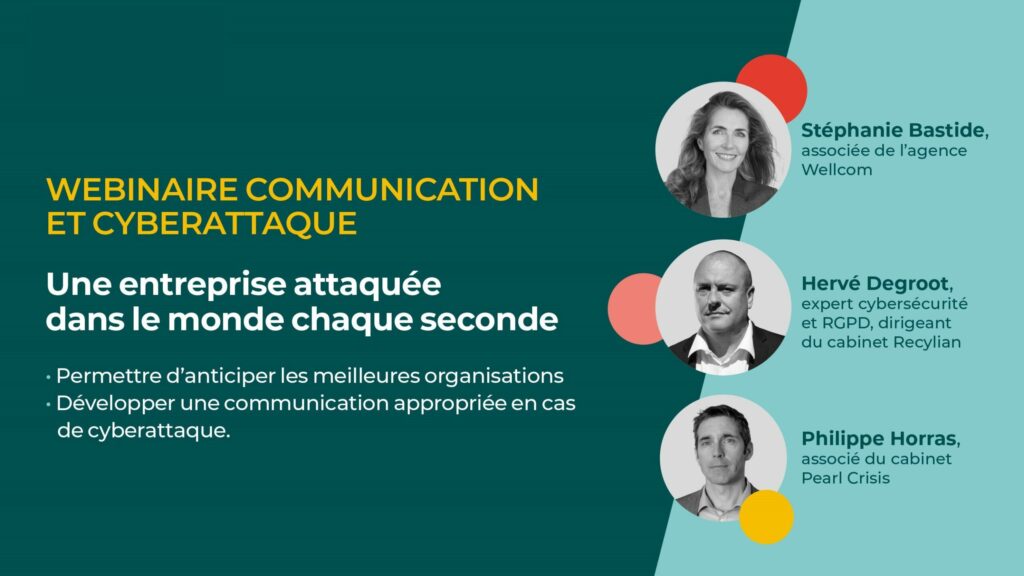 (Re)Découvrez les secrets de la communication en cas d’attaque lors de notre Wellbinaire, qui a eu lieu le 17 octobre 2033, animé par notre associée Stéphanie Bastide, l’expert cybersecurité et RGPD Hervé DEGROOT et le consultant en gestion de crise Philippe Horras.