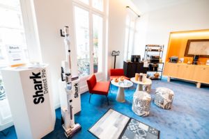 L’agencement du lieu (un appartement haussmannien situé rue de la Boétie) a permis aux équipes de mettre en scène des univers travaillés pour chaque marque. « Nous avons réalisé un travail important sur la scénographie afin de pouvoir proposer des stands personnalisés, facilement identifiables par tous ». La marque Bab’in a notamment profité d’un décor reconstituant une épicerie fine vendant des croquettes, tandis que les produits de Shark Ninja étaient mis en valeur au sein d’une véritable cuisine aux meubles logotypés. De son côté, la marque Florence by Mills était mise en avant à travers une décoration naturelle et bucolique, à l’image de sa cible chez la Génération Z. « Pour vivre une expérience cohérente en passant d’un univers à l’autre, nous avons également imaginé un parcours de déambulation précis ». Jeux concours, briefings et démonstrations de produits ont ponctué la journée de temps forts.